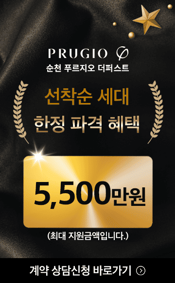 첫번째 푸르지오가 순천에 찾아옵니다. 순천의 중심에서 첫 푸르지오 이마트, 홈플러스, 메가박스를 걸어서 바로 누린다. 집앞 마트권 순척역, 종합터미널, 동순천IC 등 순천전역을 빠르게 KTX 역세권 국가정원, 순천 동천변, 순천만까지 누리는 숲세권 쾌적한 숲세권 푸르지오의 안정성과 기술력을 직접보고 선택 믿을 수 있는 선시고 후분양 사업 4bay맞통풍구조(일부세대 제외) 세대별 창고 및 여유로운 수납공간 제공 푸르지오만의 공간 혁신 첫번째 푸르지오가 순천에 찾아옵니다. 순천의 중심에서 첫 푸르지오 이마트, 홈플러스, 메가박스를 걸어서 바로 누린다. 집앞 마트권 순척역, 종합터미널, 동순천IC 등 순천전역을 빠르게 KTX 역세권 국가정원, 순천 동천변, 순천만까지 누리는 숲세권 쾌적한 숲세권 푸르지오의 안정성과 기술력을 직접보고 선택 믿을 수 있는 선시고 후분양 사업 4bay맞통풍구조(일부세대 제외) 세대별 창고 및 여유로운 수납공간 제공 푸르지오만의 공간 혁신